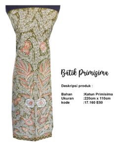 Masyarakat luas mengenal batik primisima sebagai salah satu jenis batik berkualitas tinggi dengan ciri khas motif yang rumit, detail, dan dikerjakan dengan penuh ketelitian. Oleh karena itu, tidak sedikit pelaku usaha batik, pengrajin, maupun pembeli premium yang menjadikan batik primisima sebagai standar kualitas.