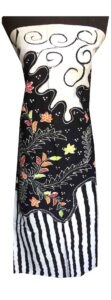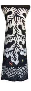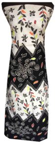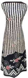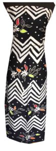 Dress batik monokrom dengan potongan clean.